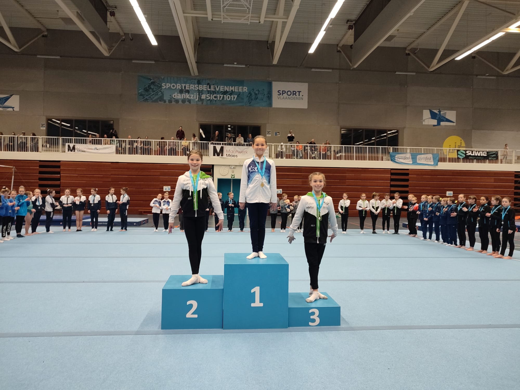 Juliette Vlaemynck (B12) turnde een zeer stabiele wedstrijd, alleen aan het laatste toestel ging het wat mis met een val aan vloer. Sara Guaillas Calva (B12) had dan weer wat pech aan barre en balk. Toch eindigden deze dames binnen de top 10 van West-Vlaanderen.