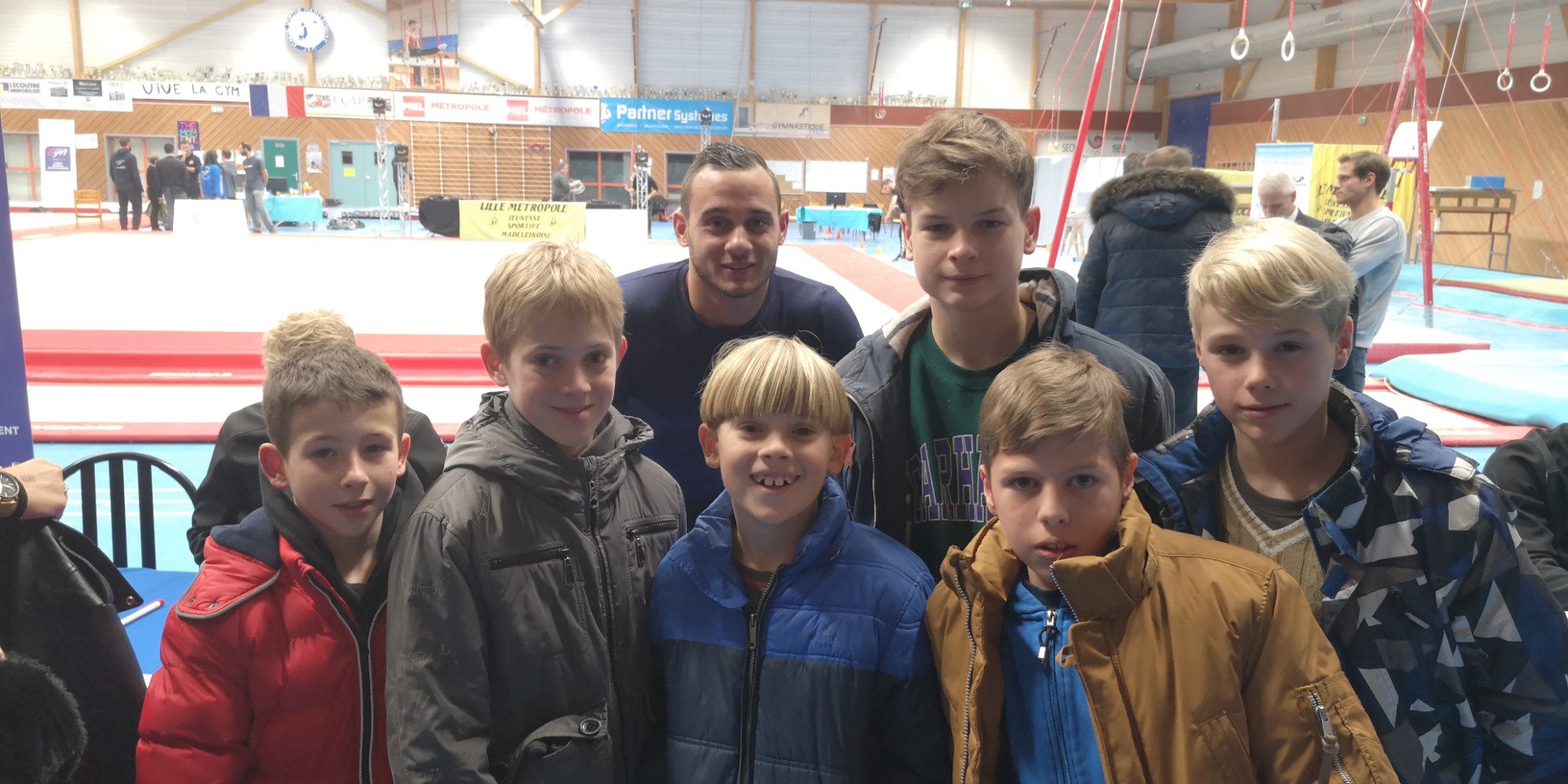 Na de wedstrijd gingen ze samen op de foto met de bronzen medaille winnaar aan ringen op het WK 2019 Samir Aït Saïd(Fr). Saïd kwam enkele jaren geleden nog in het nieuws door een dubbele beenbreuk na een slechte landing aan de sprong tijdens de kwalificatieronde op de olympische spelen in Rio (2016). Door complicaties dreigde hij op een bepaald moment zijn been te verliezen. En zie, in 2019 staat hij er volledig terug en behaalt hij op het WK in Stuttgart 2019 brons aan de ringen.